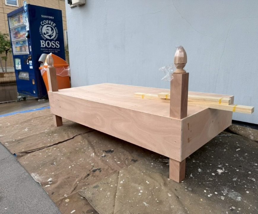 新規製作した什器をそのまま塗るのではなく、凹凸や接合部を整えて、見映えの良い仕上がりにしたいとのご要望をいただきました。