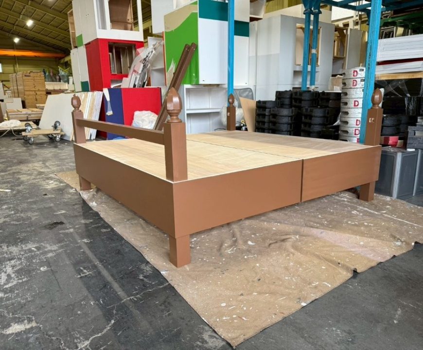 工場内で製作した木工什器を納品前に塗装仕上げし、色ムラや塗り残しのない均一な状態へ整えたいというご相談でした。
