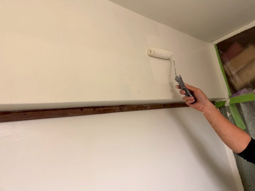 内部塗装は光の反射でローラー跡が見えやすいため、塗り継ぎの方向を意識しながら丁寧に施工しています。