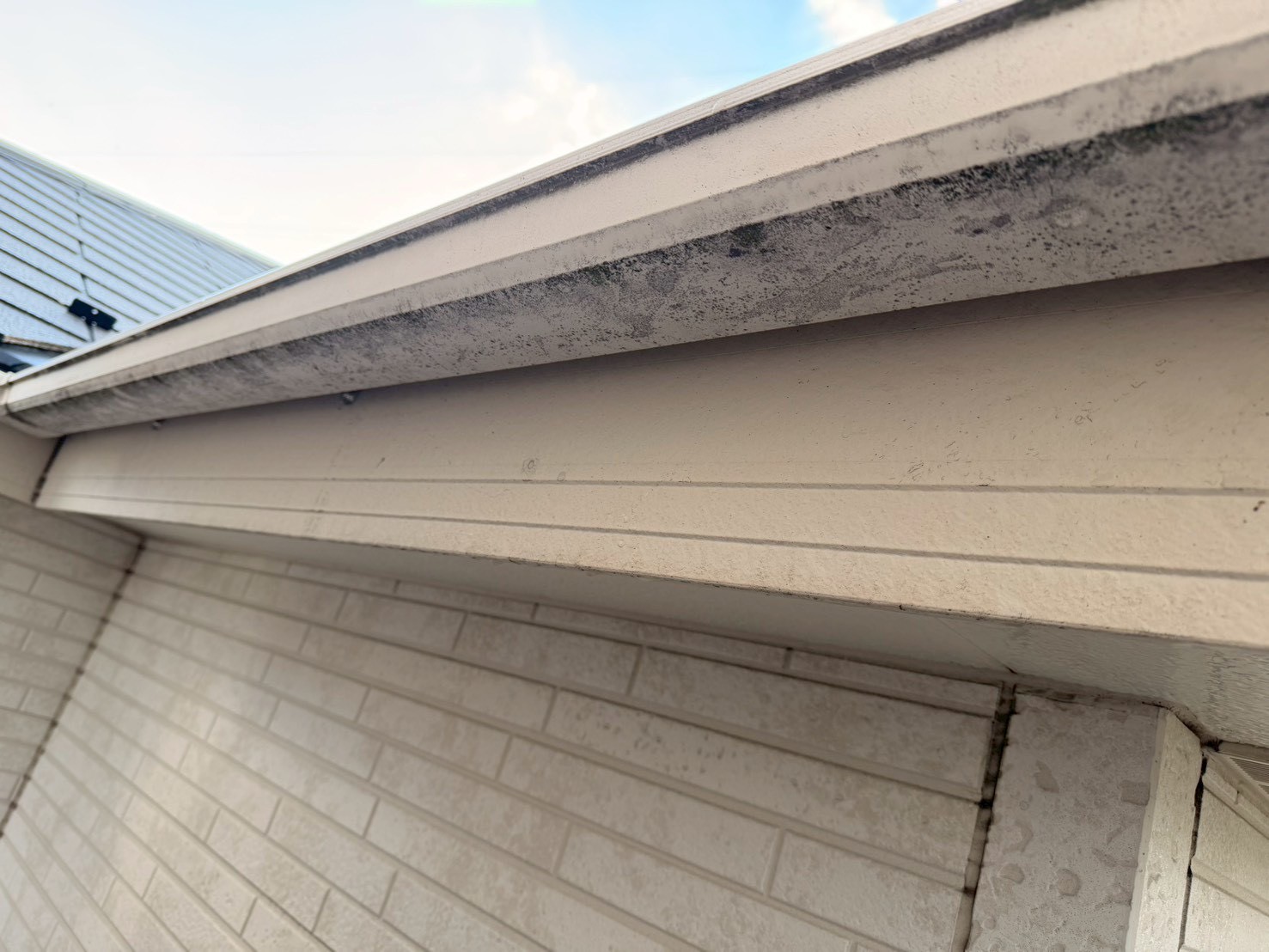 外壁だけでなく、雨樋・破風板・シャッターボックス・配管カバーなどの付帯部も、高圧洗浄でしっかりと汚れを落とします。