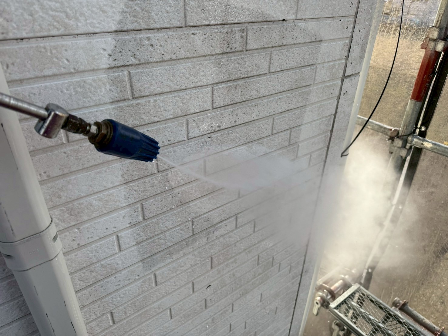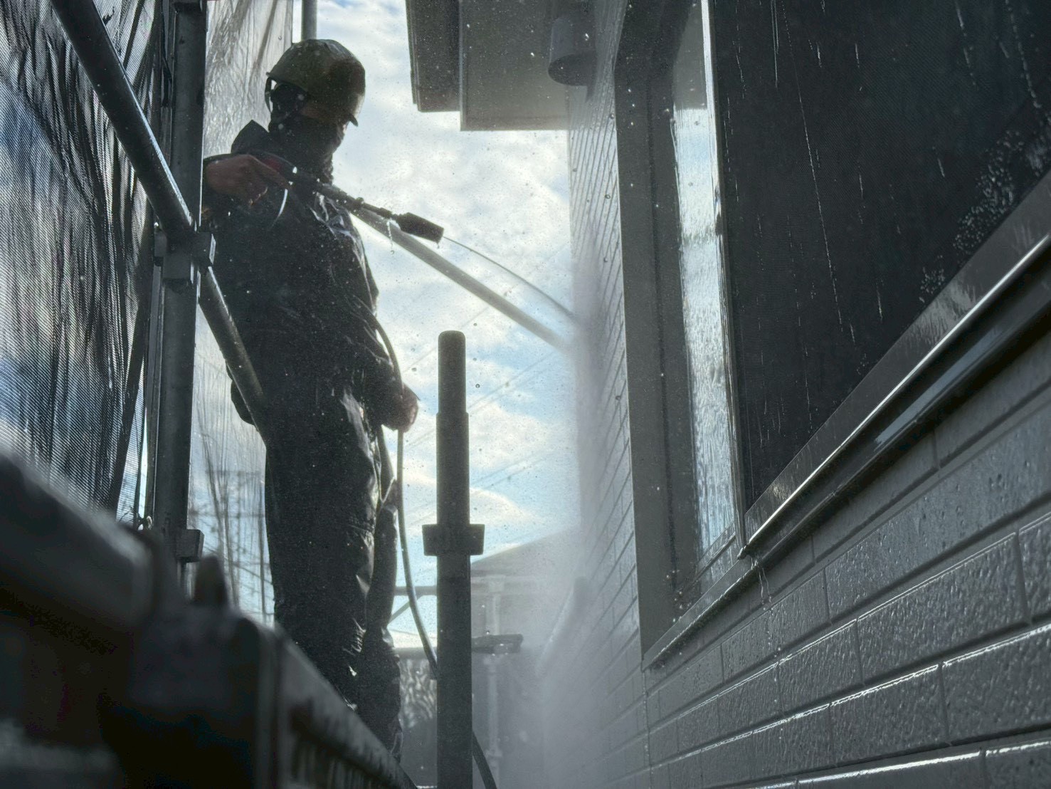 このように、洗浄前の段取りを徹底することで、安全かつムラのない高圧洗浄が可能となり、後工程である塗装の仕上がりと耐久性をしっかりと支える下地づくりへとつながります。