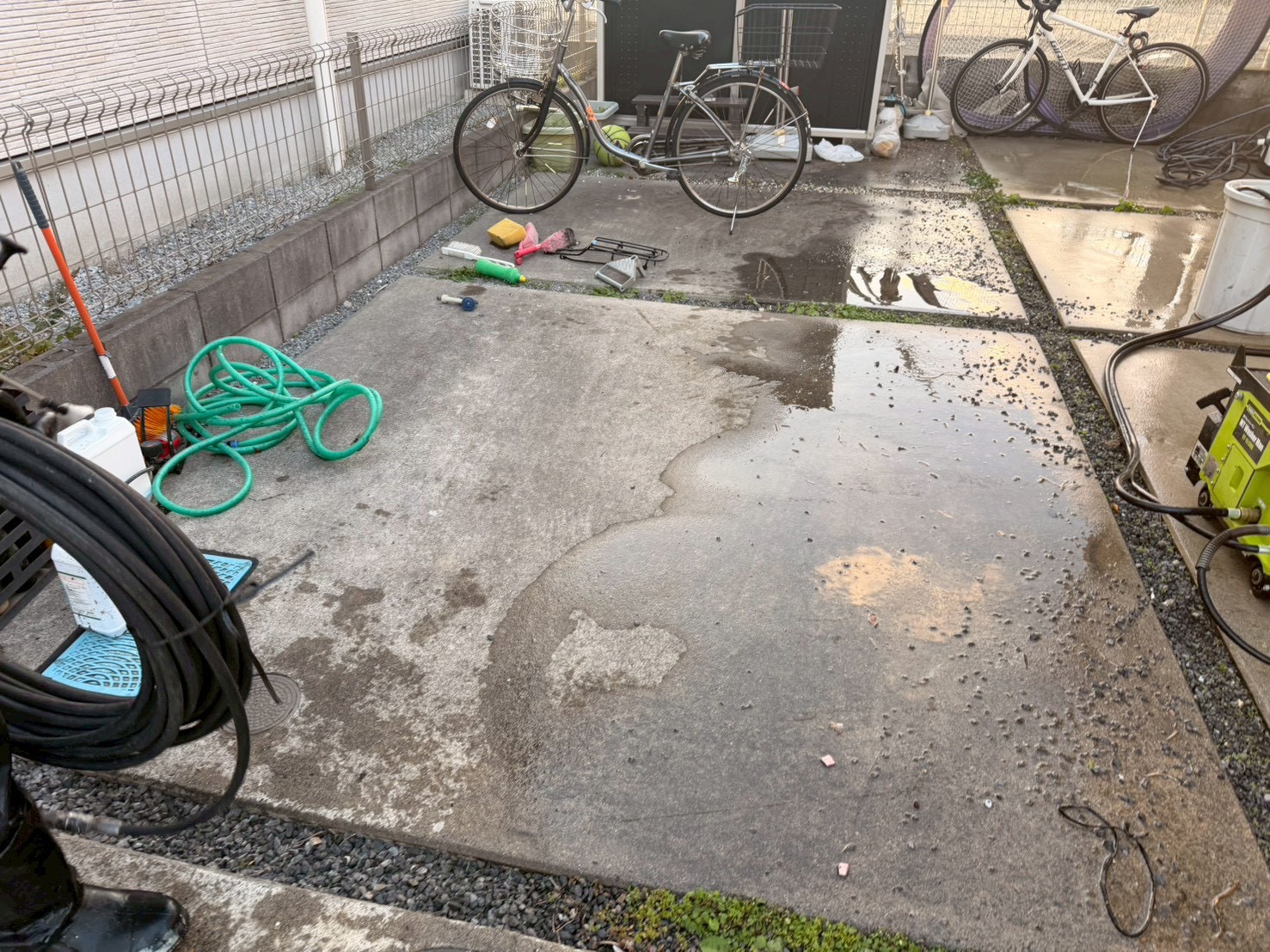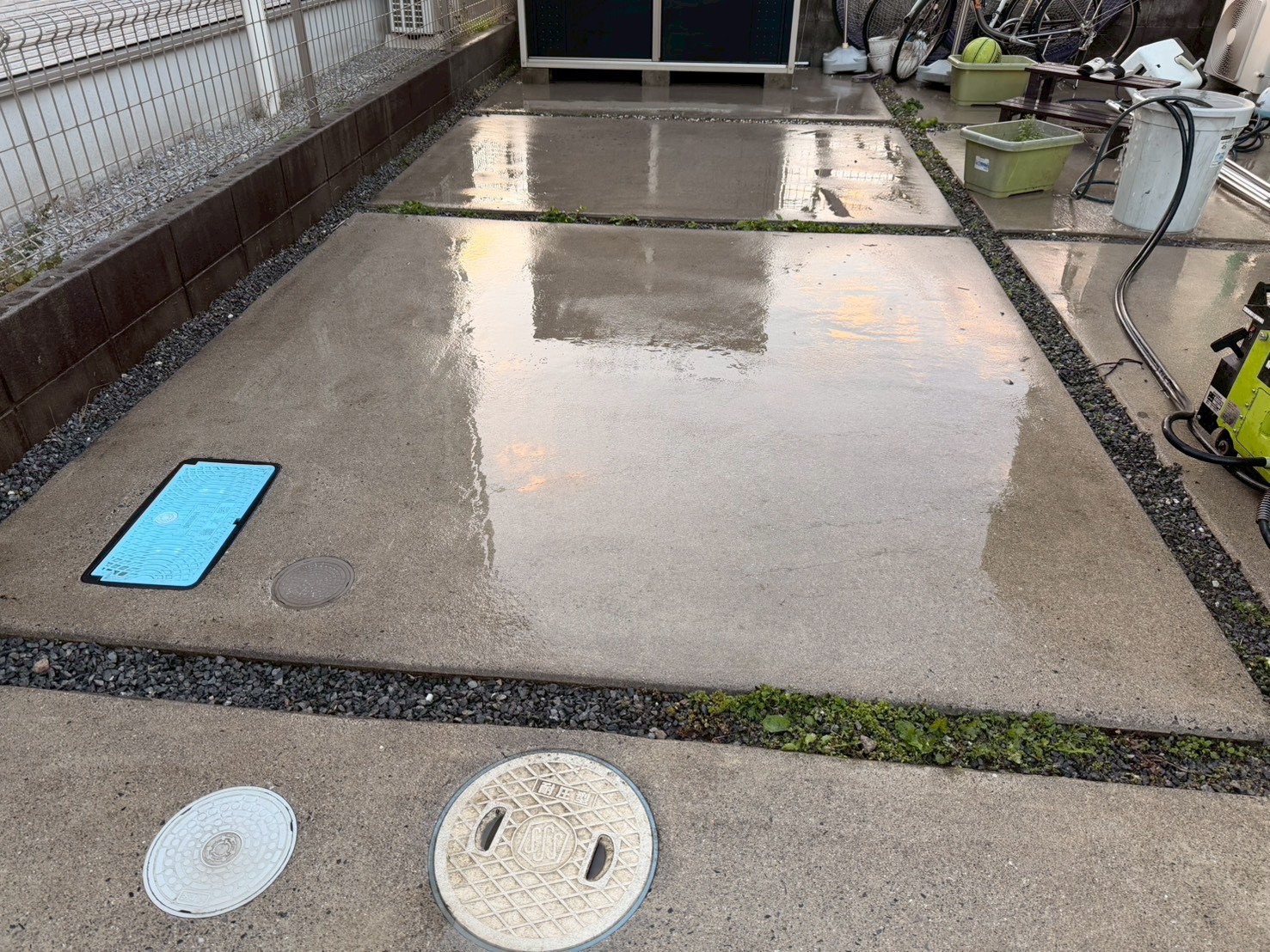 K様邸では、建物周囲のコンクリート土間もあわせて洗浄しました。