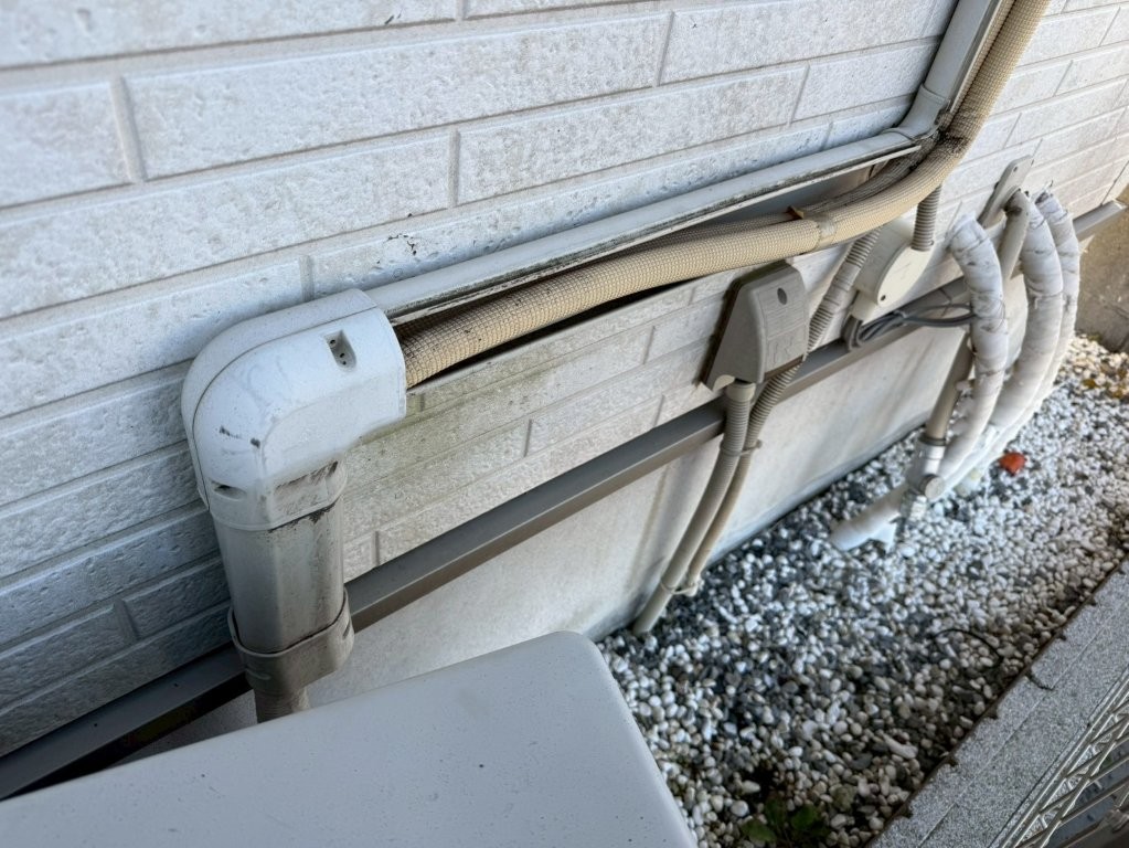 外壁塗装に伴い、K様邸では エアコンのスリムダクトを一度取り外す作業 を行いました。
