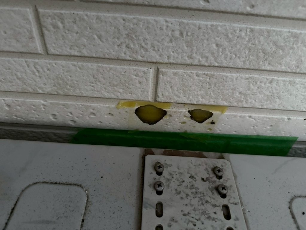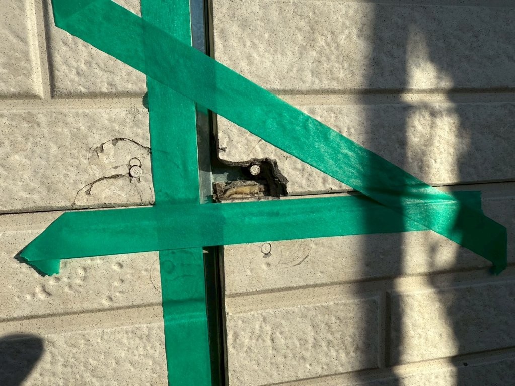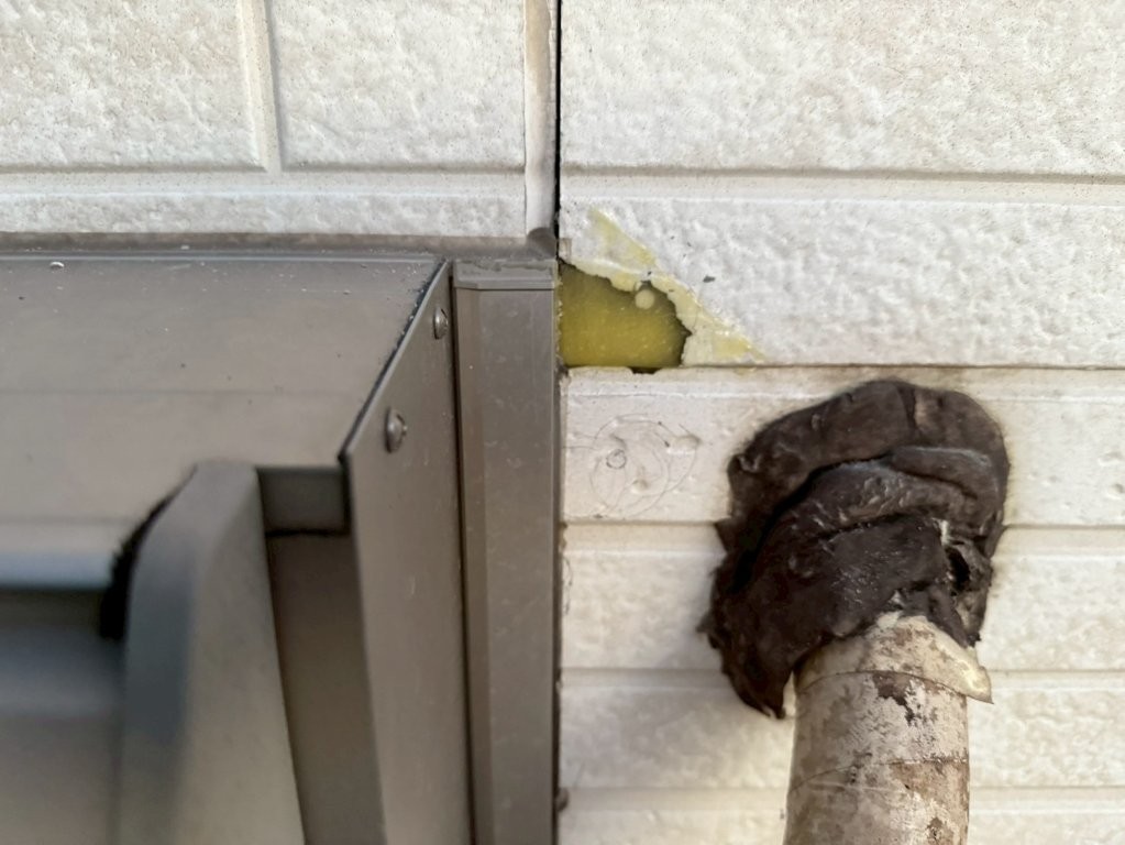 今回のK様邸では、エアコンダクト周辺に限らず、外壁全体を確認する中でサイディング下地の欠け・破損があることは、事前の現地調査の段階で把握していました。