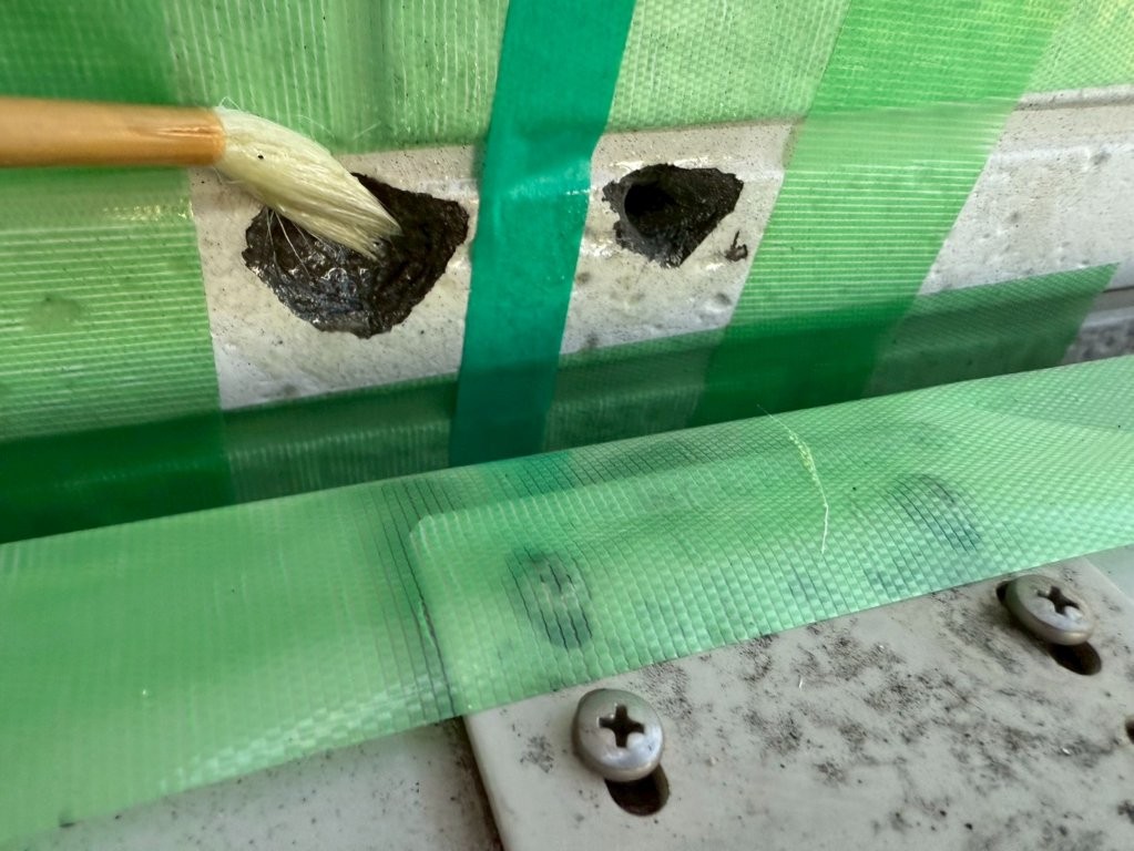 続いて、補修材を充填する前に プライマーを塗布 しました。