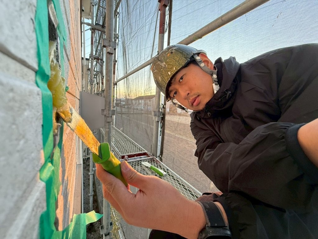 下地補修に入る前に、まずは マスキングテープによる養生作業 を行いました。
