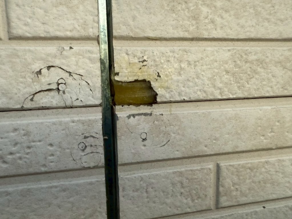 補修箇所は、サイディング端部や目地に近く、動きが出やすいと判断した部分です。