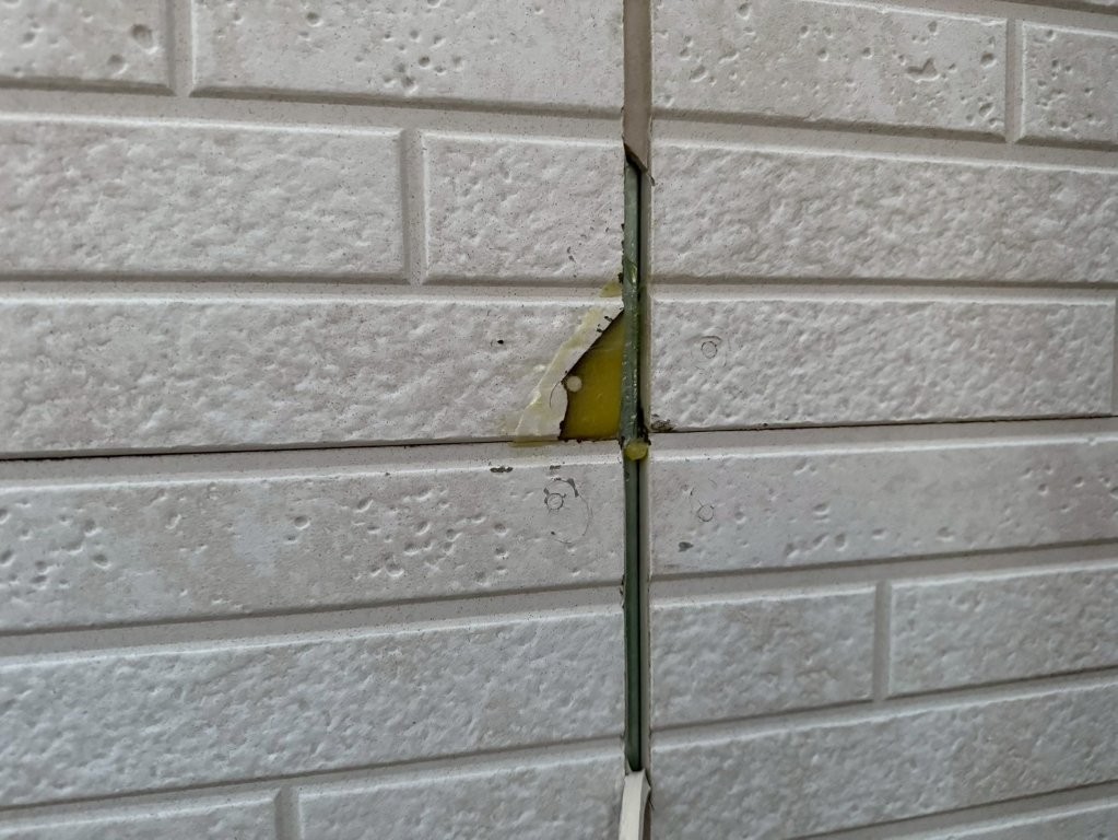 - 目地まわりに不自然な欠損が見られる