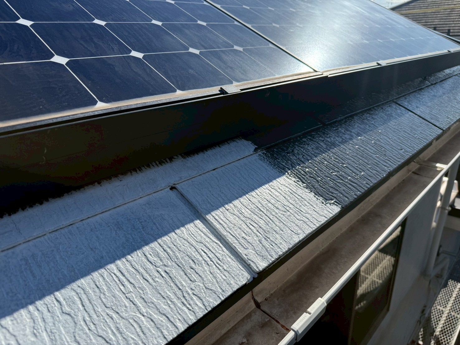 三郷市K様邸の屋根塗装では、中塗り工程を「仕上げ前の作業」ではなく、屋根塗装の性能を決定づける最重要工程として施工しました。